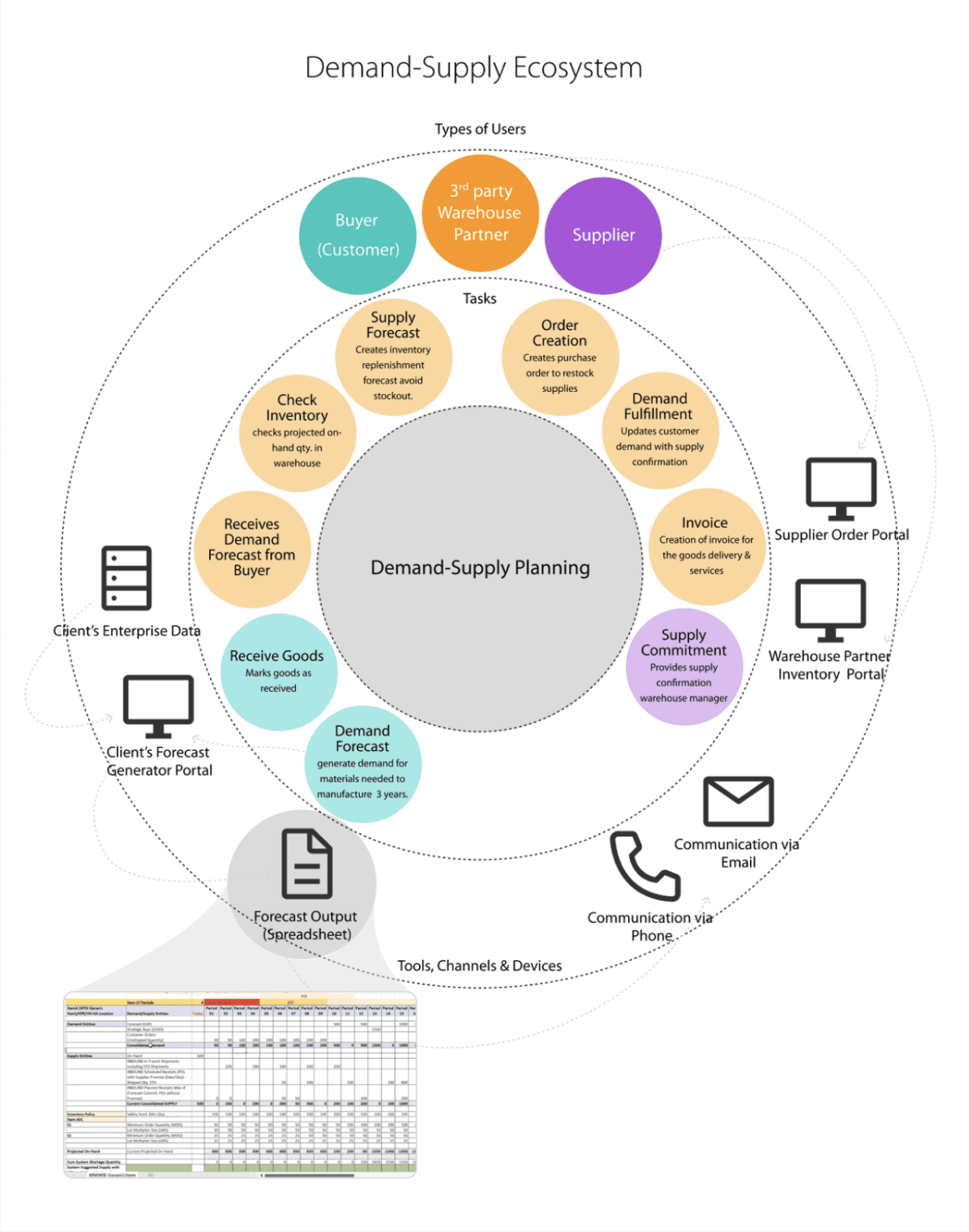 Client (Buyer) is currently using legacy tools (spreadsheets) to forecast material demands to its suppliers and warehouse owners to manufacture end product.