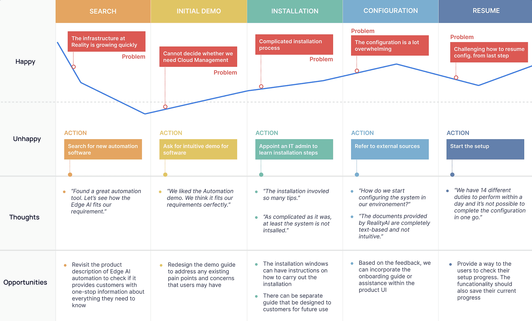 We created a customer journey map to align stakeholders and highlight pain points in the current RealityAI experience.